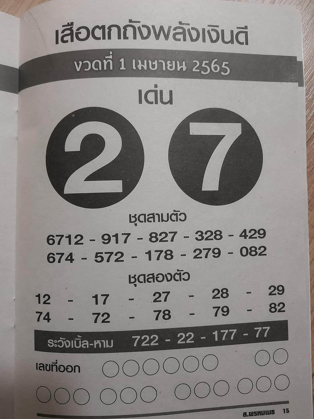 หวยเสือตกถังพลังเงินดี 16/4/65 เจาะเลขเด็ดงวดนี้แม่นๆ