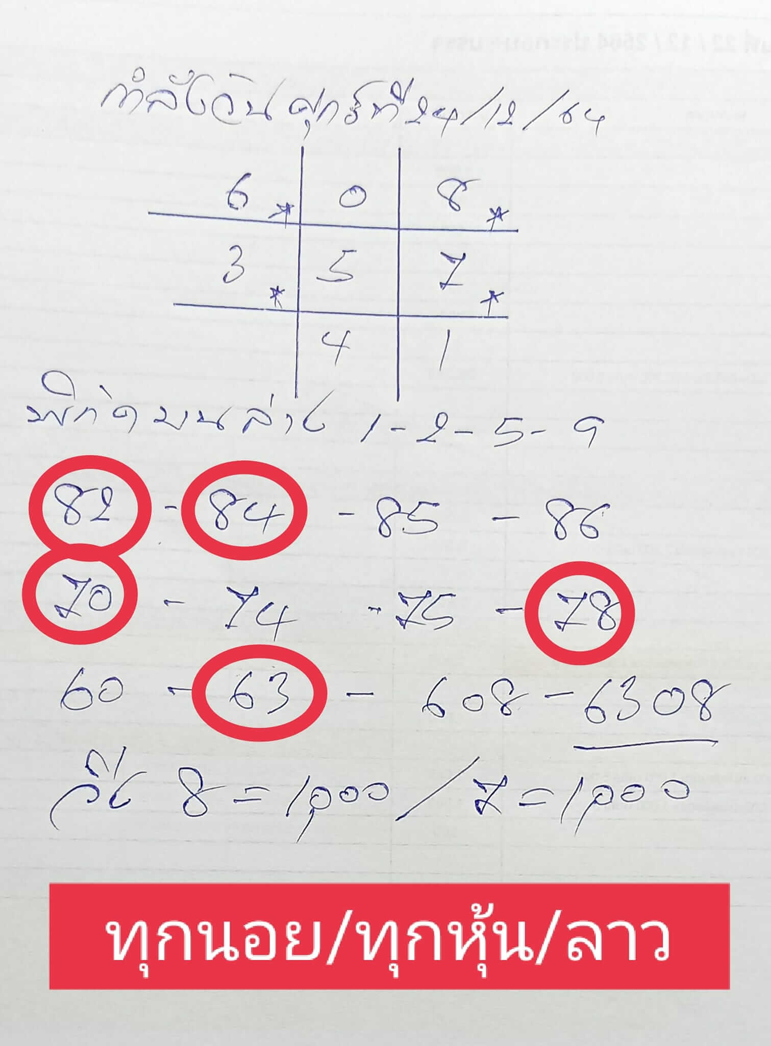 หวยลาว 24/12/64 สถิติหวยลาวออกวันศุกร์
