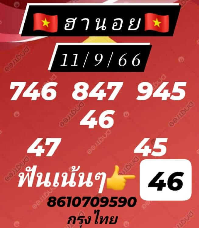 หวยฮานอย 11/9/66 วิเคราะห์หวยฮานอยรายวัน