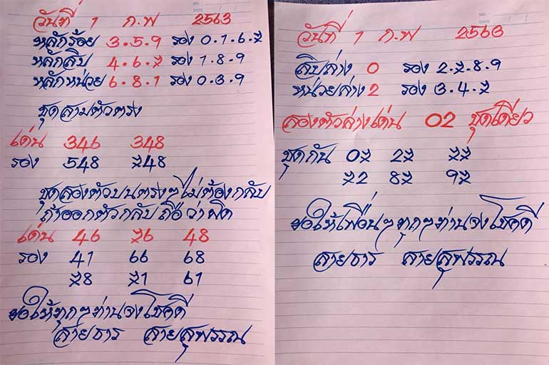 หวยสายธาร 1/2/63 ชุด 3 ตัว และ 2 ตัว