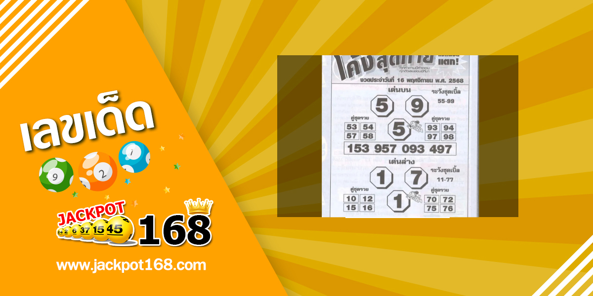 หวยโค้งสุดท้าย 16/11/68 ตัวเด่นมาแรง เลขสวยน่าติดตาม