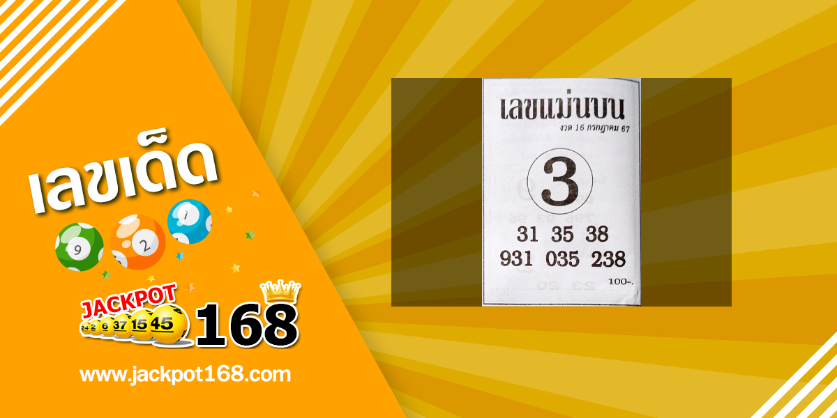 คอหวย ห้ามพลาดเพราะคุณสามารถรับเลขเด็ด หวยซอง และเลขดังหวยเด็ดงวดนี้ได้ที่นี้ จากเว็บไซต์ jackpot168.com หนึ่งในเว็บที่แบ่งปันเลขงวดนี้เพื่อเป้นแนวทางให้กับคอหวยและนักเสี่ยงโชคที่ชอบเล่นหวยทุกคนได้นำไปวิเคราะห์ก่อนเลือกซื้อสลากกินแบ่งและหวยรัฐบาลในงวดนี้