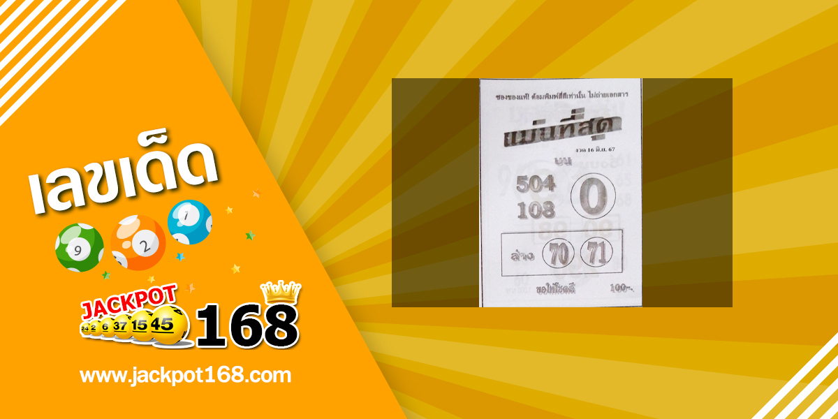 คอหวย ห้ามพลาดเพราะคุณสามารถรับเลขเด็ด หวยซอง และเลขดังหวยเด็ดงวดนี้ได้ที่นี้ จากเว็บไซต์ jackpot168.com หนึ่งในเว็บที่แบ่งปันเลขงวดนี้เพื่อเป้นแนวทางให้กับคอหวยและนักเสี่ยงโชคที่ชอบเล่นหวยทุกคนได้นำไปวิเคราะห์ก่อนเลือกซื้อสลากกินแบ่งและหวยรัฐบาลในงวดนี้