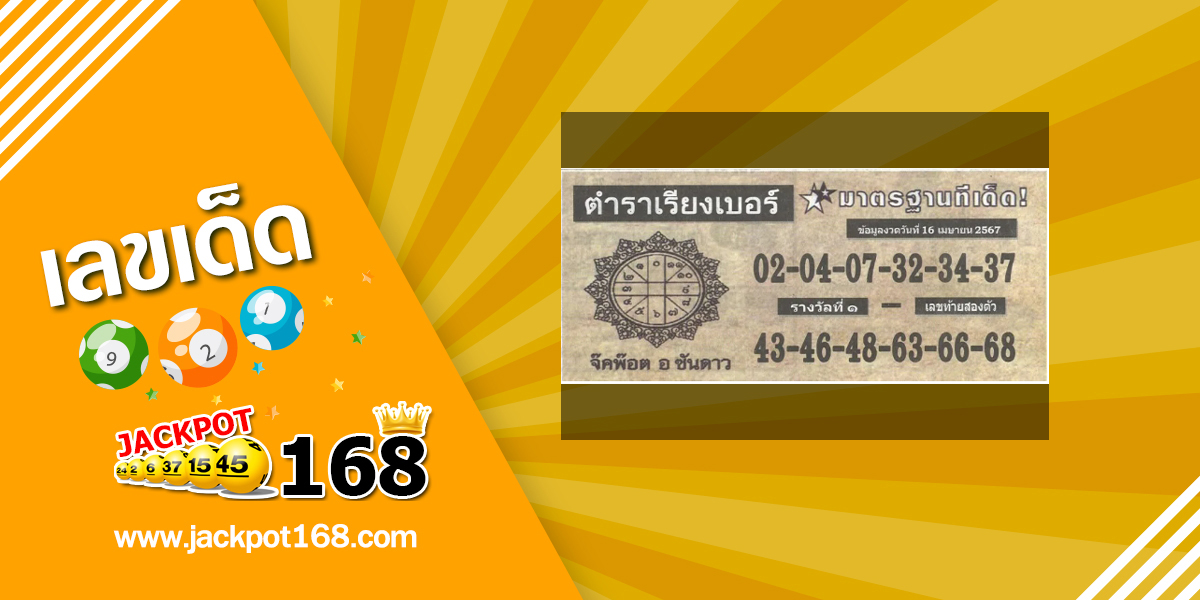 คอหวย ห้ามพลาดเพราะคุณสามารถรับเลขเด็ด หวยซอง และเลขดังหวยเด็ดงวดนี้ได้ที่นี้ จากเว็บไซต์ jackpot168.com หนึ่งในเว็บที่แบ่งปันเลขงวดนี้เพื่อเป้นแนวทางให้กับคอหวยและนักเสี่ยงโชคที่ชอบเล่นหวยทุกคนได้นำไปวิเคราะห์ก่อนเลือกซื้อสลากกินแบ่งและหวยรัฐบาลในงวดนี้