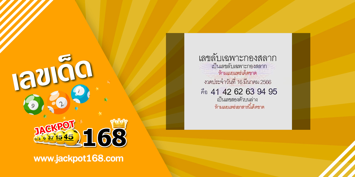 คอหวย ห้ามพลาดเพราะคุณสามารถรับเลขเด็ด หวยซอง และเลขดังหวยเด็ดงวดนี้ได้ที่นี้ จากเว็บไซต์ jackpot168.com หนึ่งในเว็บที่แบ่งปันเลขงวดนี้เพื่อเป้นแนวทางให้กับคอหวยและนักเสี่ยงโชคที่ชอบเล่นหวยทุกคนได้นำไปวิเคราะห์ก่อนเลือกซื้อสลากกินแบ่งและหวยรัฐบาลในงวดนี้