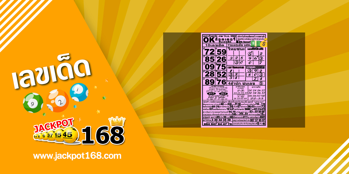 คอหวย ห้ามพลาดเพราะคุณสามารถรับเลขเด็ด หวยซอง และเลขดังหวยเด็ดงวดนี้ได้ที่นี้ จากเว็บไซต์ jackpot168.com หนึ่งในเว็บที่แบ่งปันเลขงวดนี้เพื่อเป้นแนวทางให้กับคอหวยและนักเสี่ยงโชคที่ชอบเล่นหวยทุกคนได้นำไปวิเคราะห์ก่อนเลือกซื้อสลากกินแบ่งและหวยรัฐบาลในงวดนี้